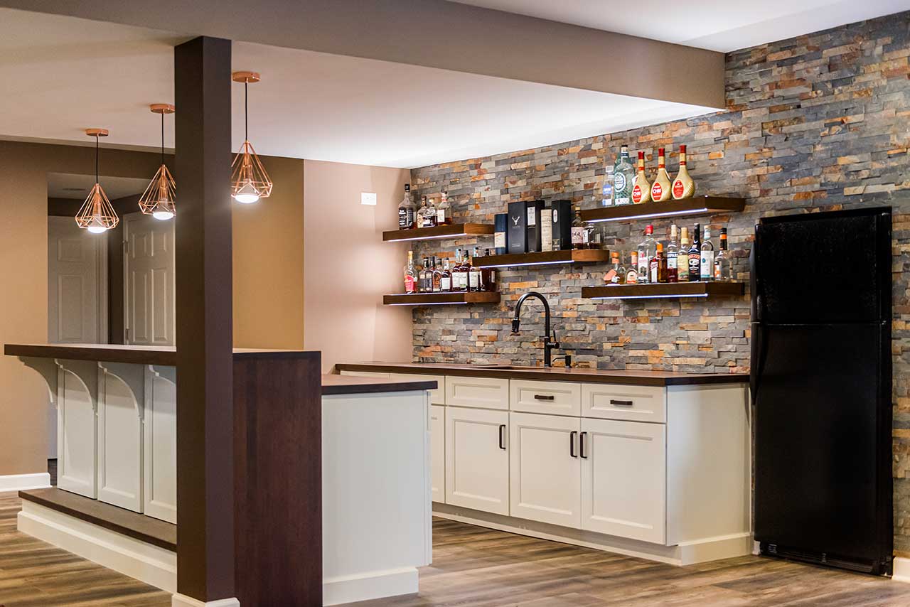 Maximize your existing space with a basement remodel from Bradford & Kent. Add a bedroom, bathroom, bar, playroom, exercise area, sauna, spa, wine cellar, home theater, even a golf simulator! The possibilities are endless. Let us show you all the ways you can utilize your basement space and increase your home’s value.