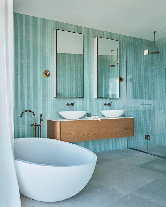 If you want to incorporate coastal beauty into your bathroom renovation, you will need to use blue with a little bit of green. An aqua color will give your bathroom a beachy feel. Brass and gold touches will make it light and fun. If you use matte black accents you will create a modern look.