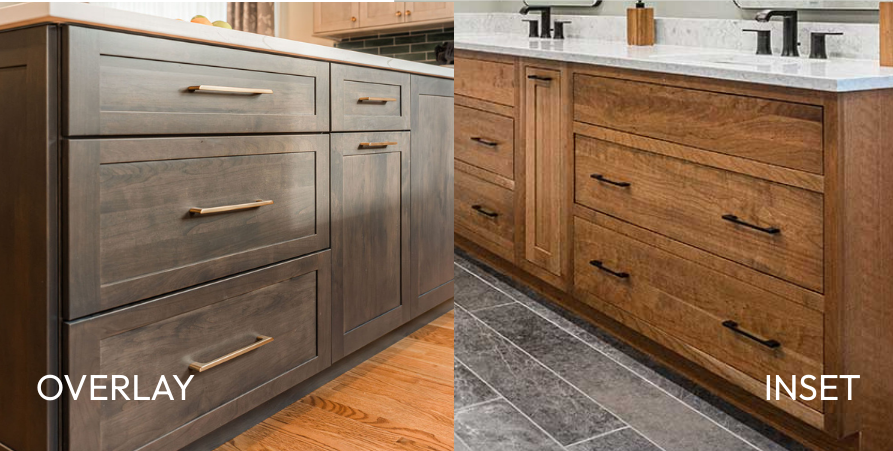The primary difference between inset and full overlay cabinets is how the cabinet doors and drawers sit in relation to the cabinet frame.